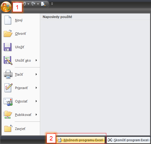 - Kliknite na tlačidlo s logom Microsoft Office v ľavom hornom rohu. Následne stlačte tlačidlo Možnosti programu Excel.