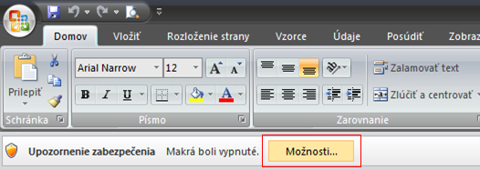 - Program zatvorte a znovu otvorte. V úvode bude zobrazené nasledovné hlásenie. Kliknite na tlačidlo Možnosti.
