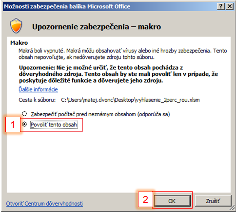 - Kliknite na stredné tlačidlo Povoliť tento obsah a potvrdte tlačidlom OK. Program by mal fungovať správne.