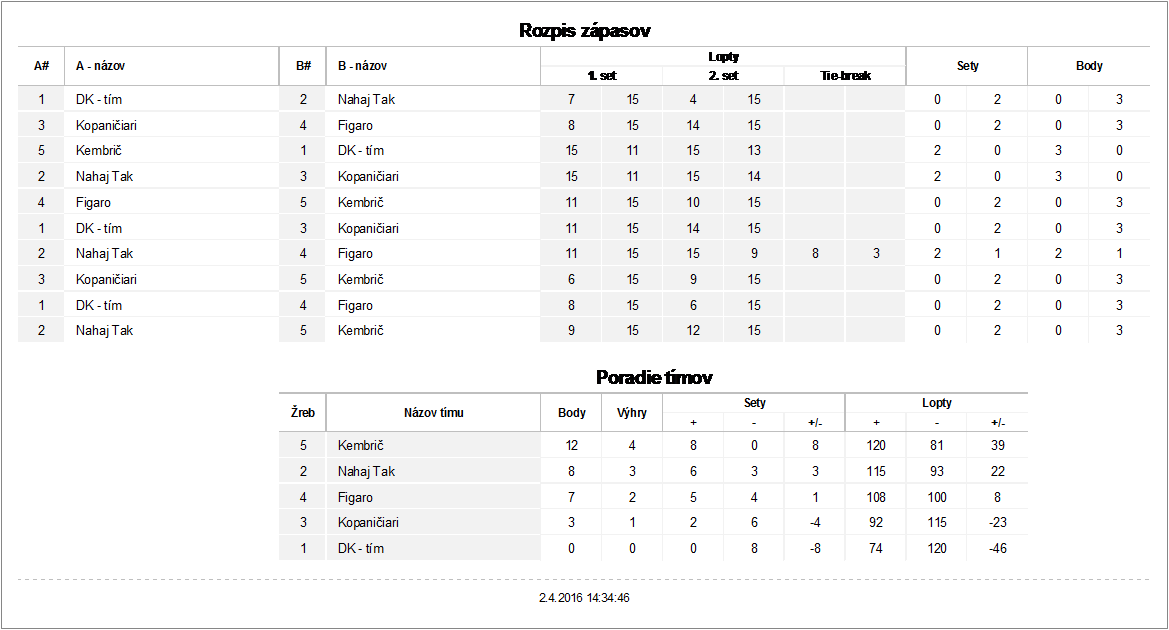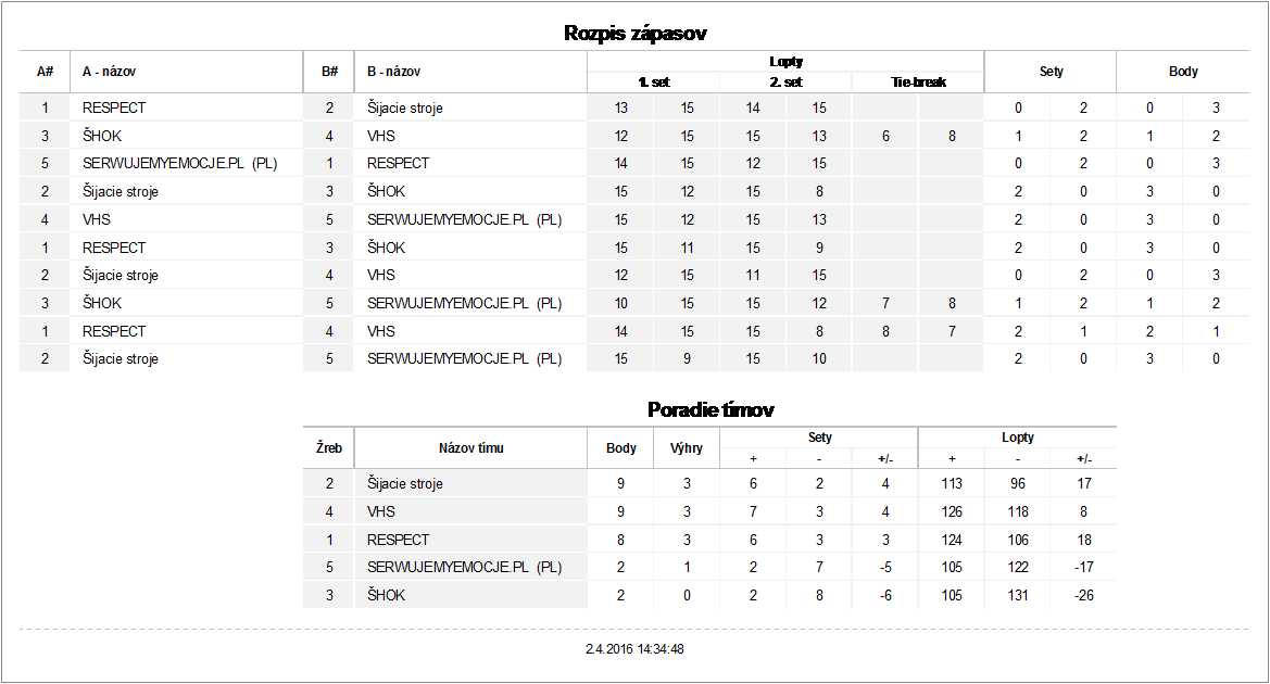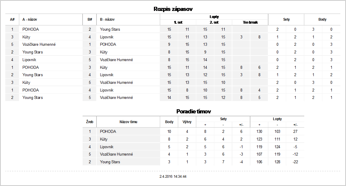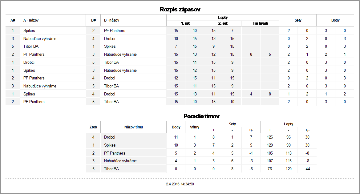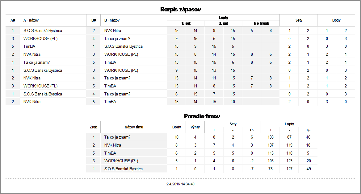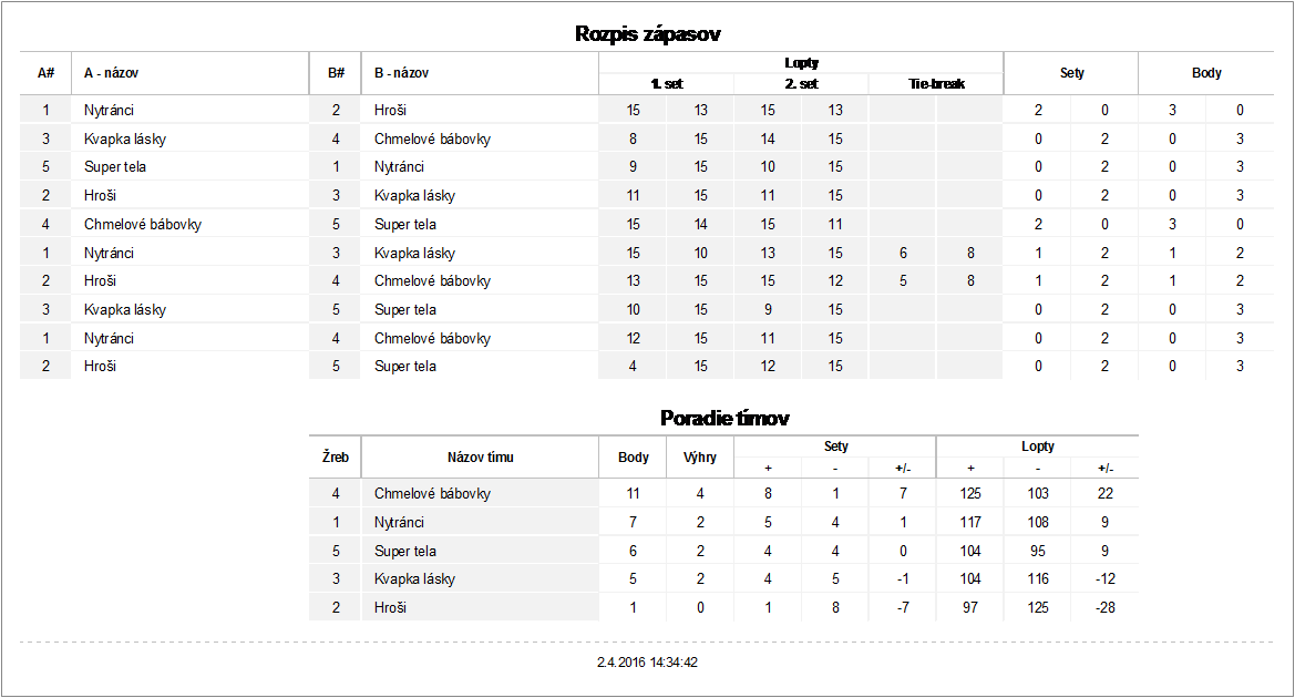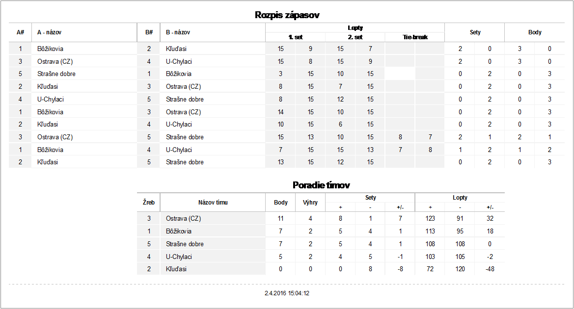- ako základná časť pri nerozhodnom stave tie break do 15 bodov s rozdielom 2 bodov