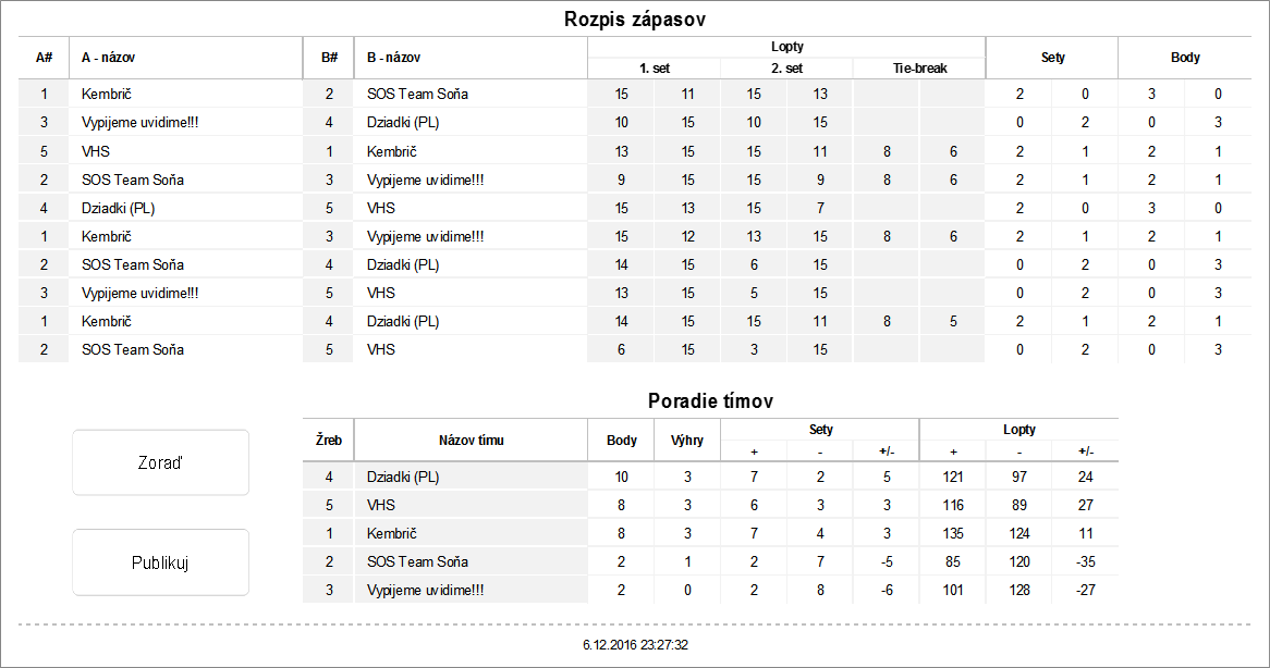 7:30 - 8:00 - všetky družstvá sa stretávajú v telocvični Gymnázia Janka Kráľa