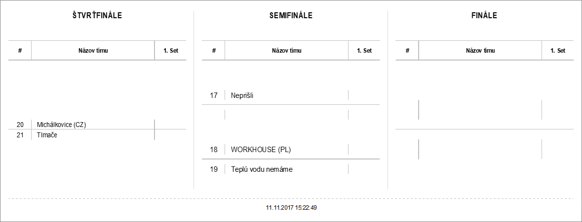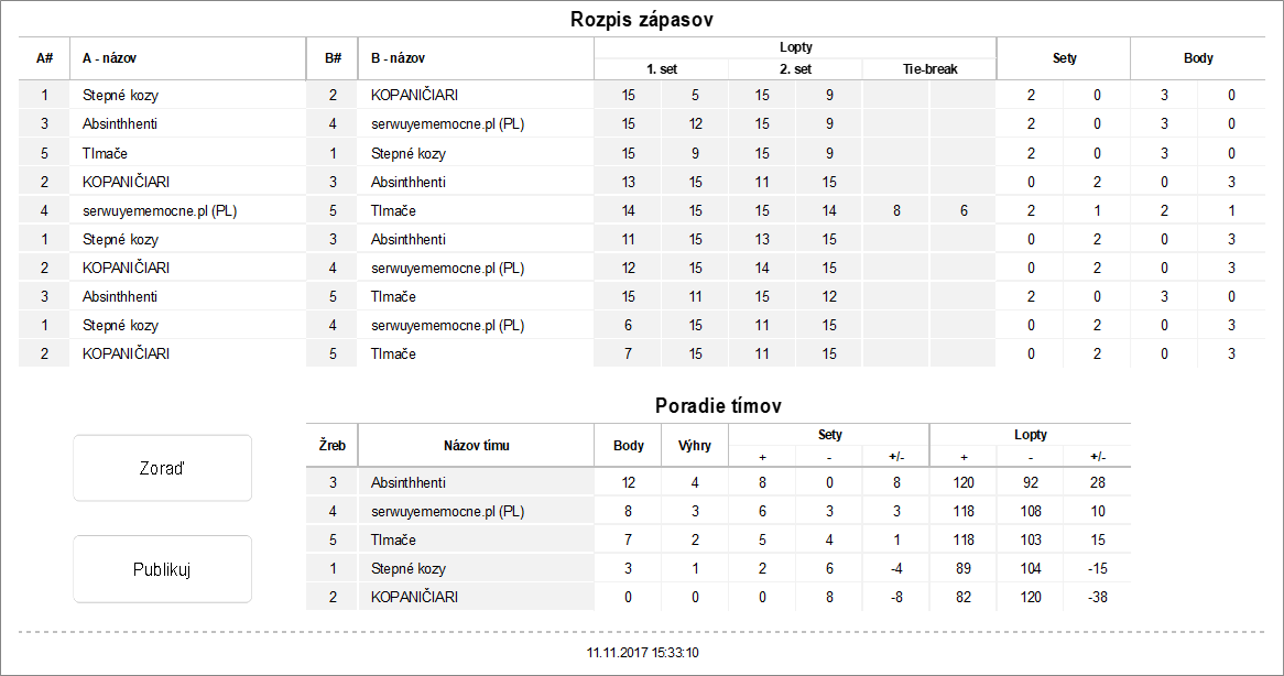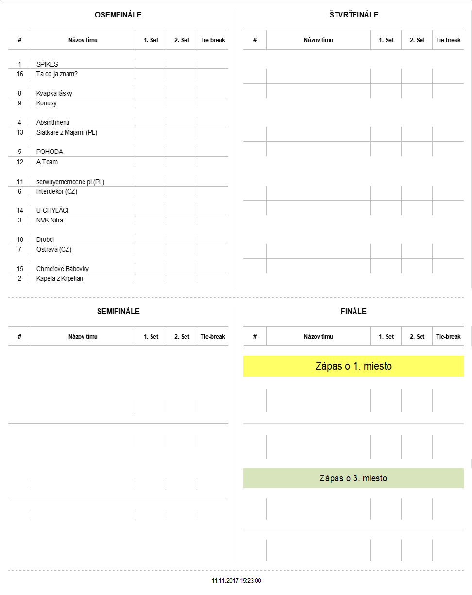 Zápas o umiestnenie – jeden set do 17 bodov bez rozdielu 2 bodov
