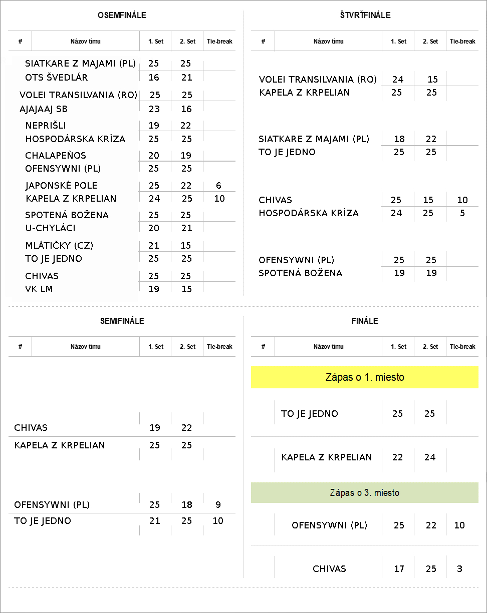 - 2 víťazné sety do 25 bez rozdielu 2 bodov
