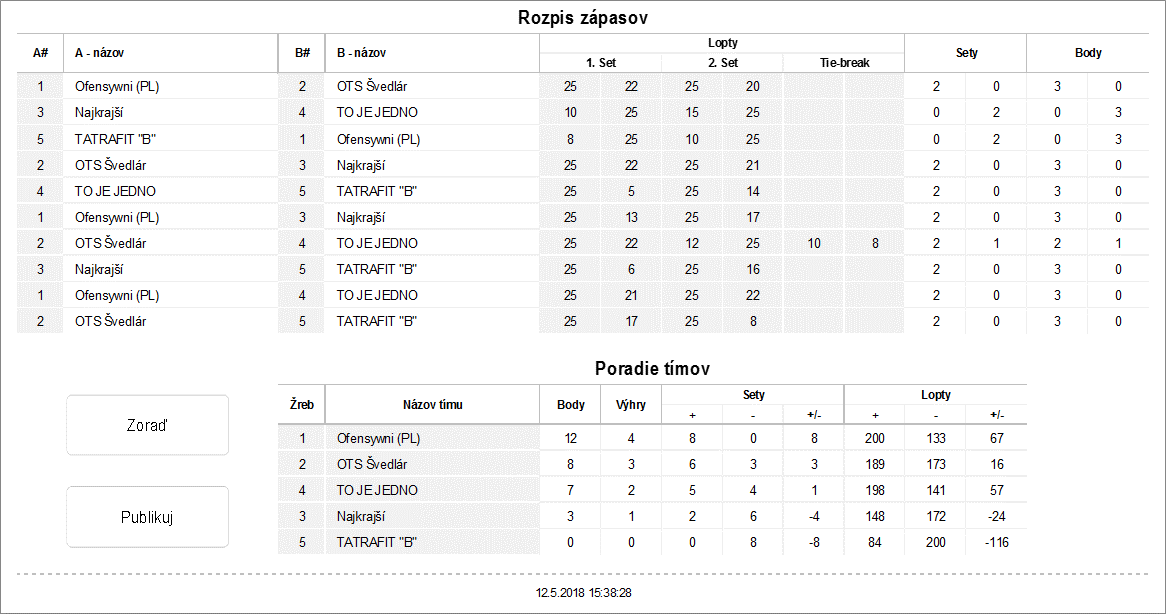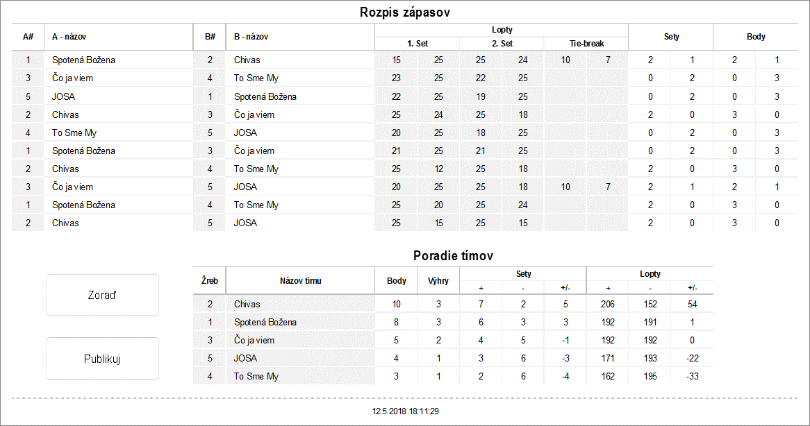 - pri nerozhodnom stave 1:1 tie break do 10 bodov (bez rozdielu 2 bodov)