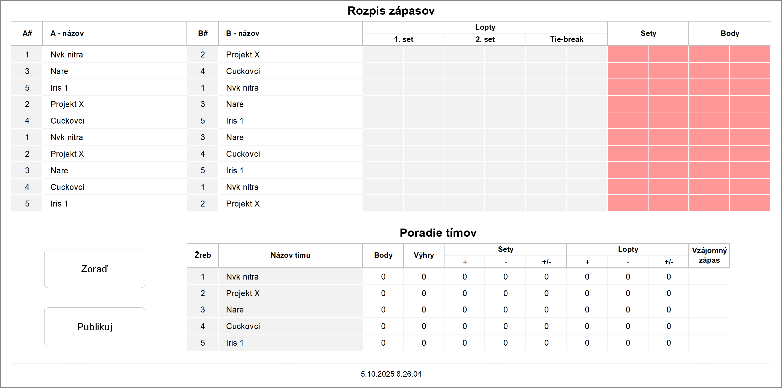 7:30 - 8:00 - všetky družstvá sa stretávajú v telocvični Gymnázia Janka Kráľa
